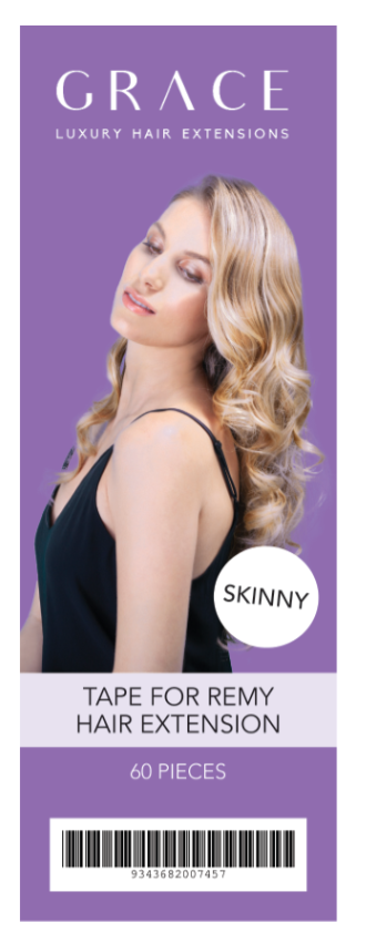 An ultimate essential, the Hair Extension Skinny tape pack by Grace for remy hair pieces consists of 60 pieces.